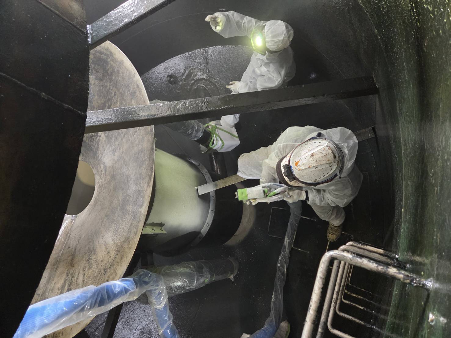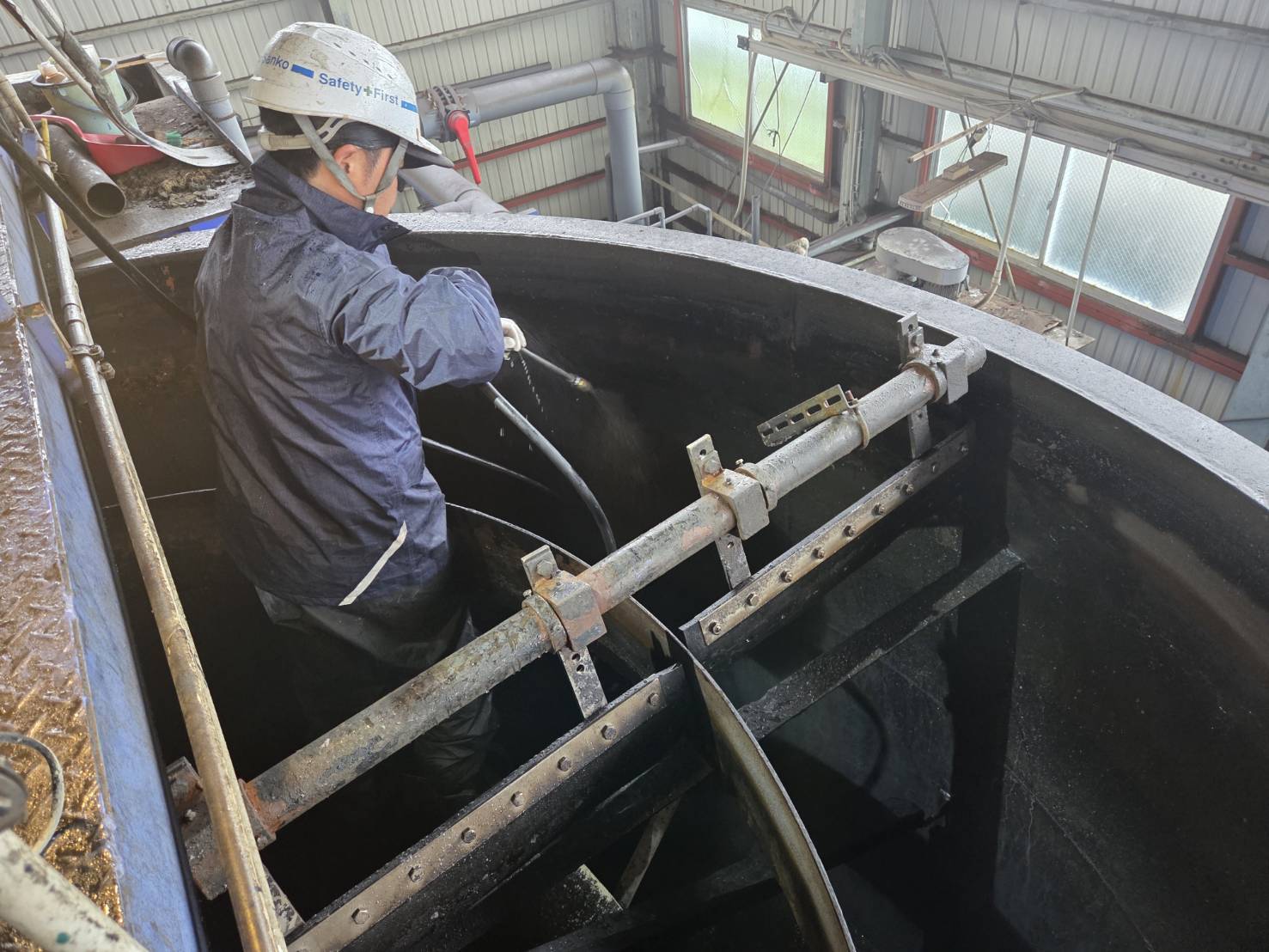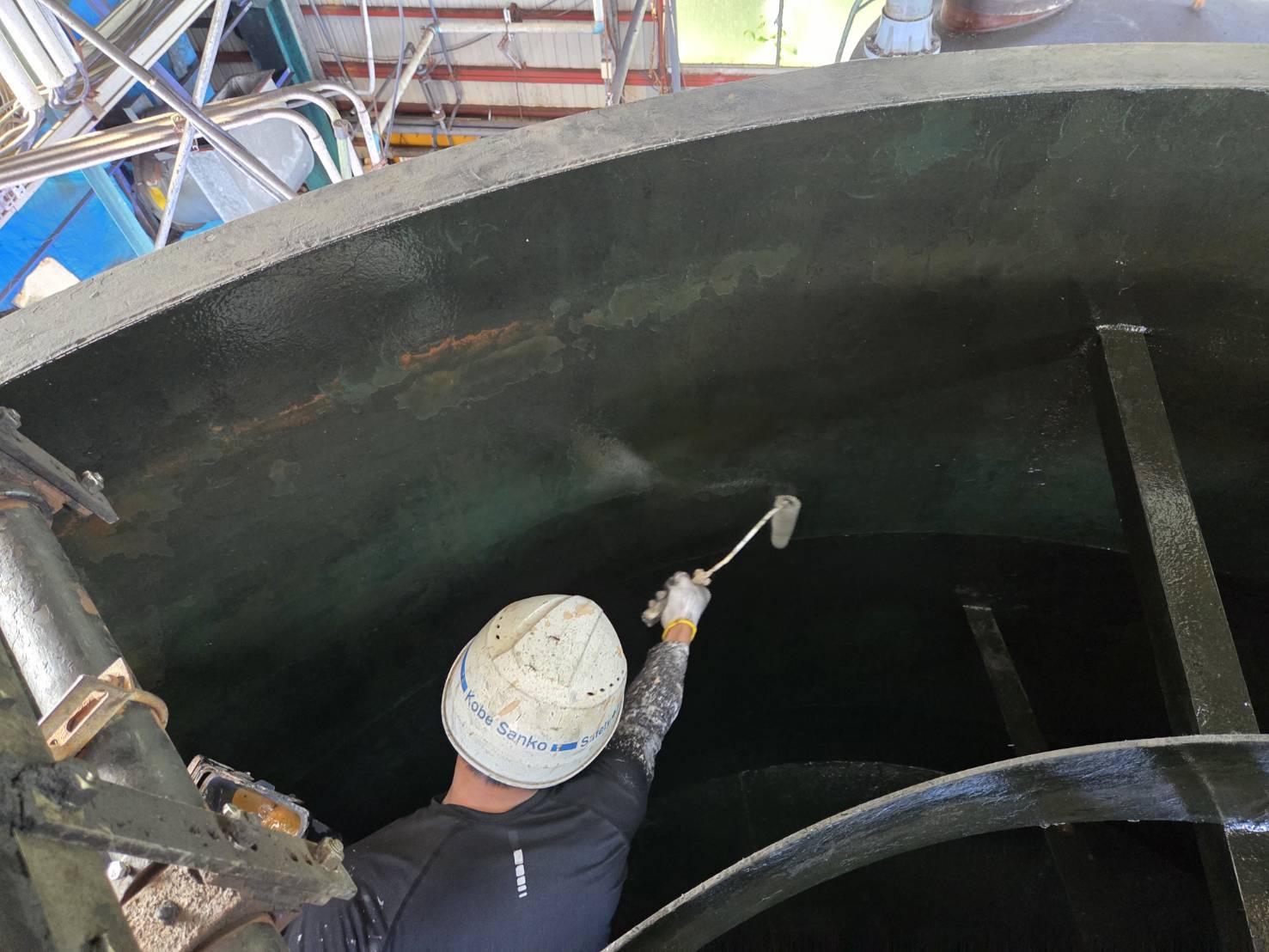 新潟県柏崎市 製造工場廃水処理槽 内面防食塗装 ハイケム工法 70㎡