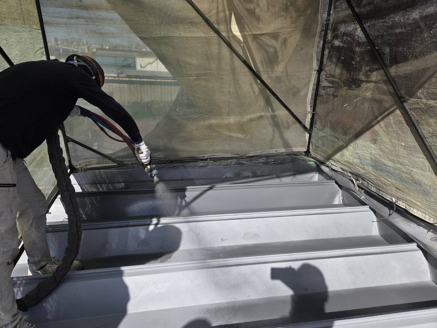 神奈川県川崎市 冷凍倉庫屋根 超速硬化ウレタン工法 5500㎡