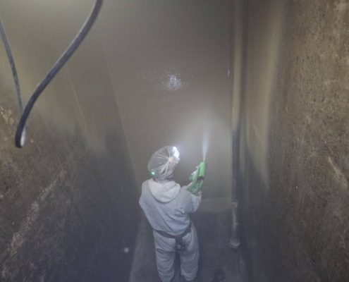 新潟県柏崎市 製造工場廃水処理槽 内面防食塗装 ハイケム工法 70㎡